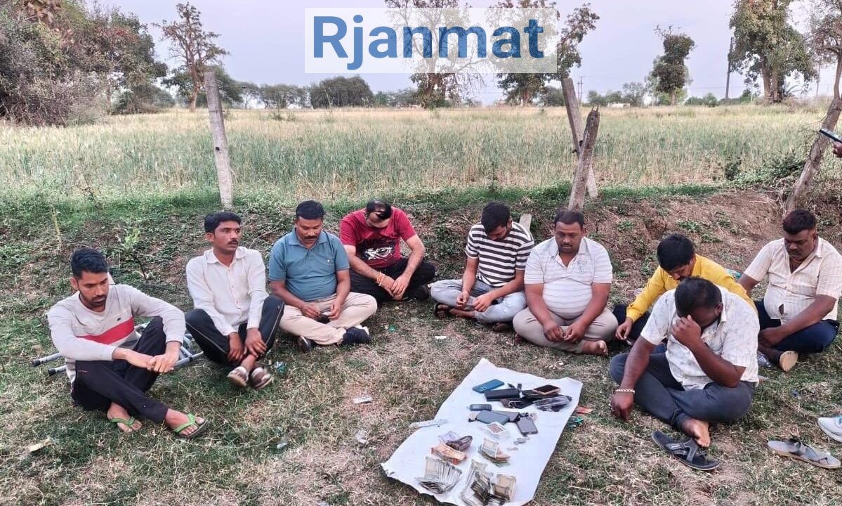 बेमेतरा पुलिस की बड़ी कार्रवाई: देवकर में जुआरियों के ठिकाने पर रेड, 09 गिरफ्तार, 2.38 लाख का मशरूका जप्त