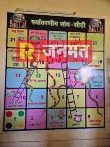 - खेल-खेल में पर्यावरण बोध: जल, ध्वनि और पर्यावरण प्रदूषण जैसे गंभीर विषयों को ‘सांप-सीढ़ी’ के खेल के माध्यम से समझाया गया है, जो कि शिक्षा के क्षेत्र में एक अकल्पनीय प्रयोग है।